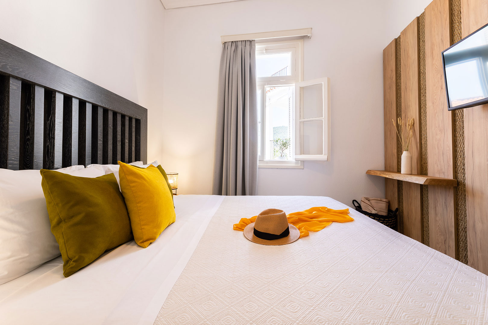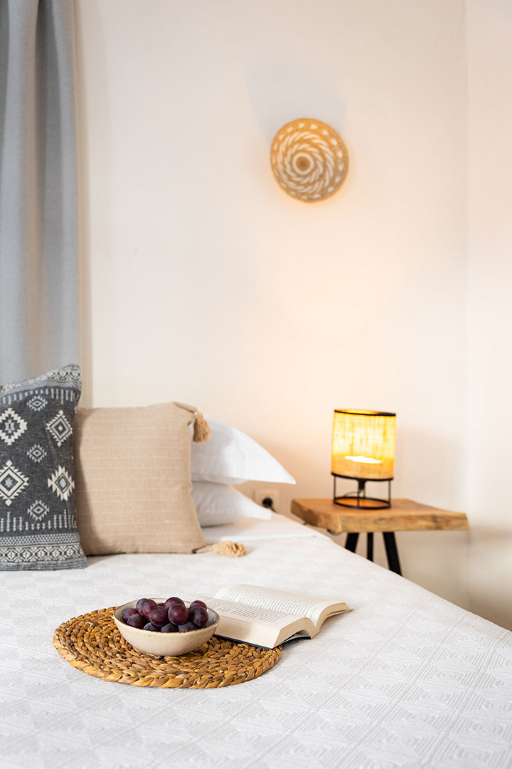 Ένας ευρύχωρος, φιλόξενος χώρος σχεδιασμένος για όσους εκτιμούν λίγη επιπλέον άνεση και ελευθερία. Με γαλήνια θέα στη θάλασσα, απαλό φυσικό φως και έναν συνδυασμό χειροποίητων και σύγχρονων λεπτομερειών, η σουίτα προσφέρει μια εκλεπτυσμένη αίσθηση άνεσης — ιδανική για χαλάρωση, παραμονή και απόλαυση του αργού ρυθμού της νησιωτικής ζωής.