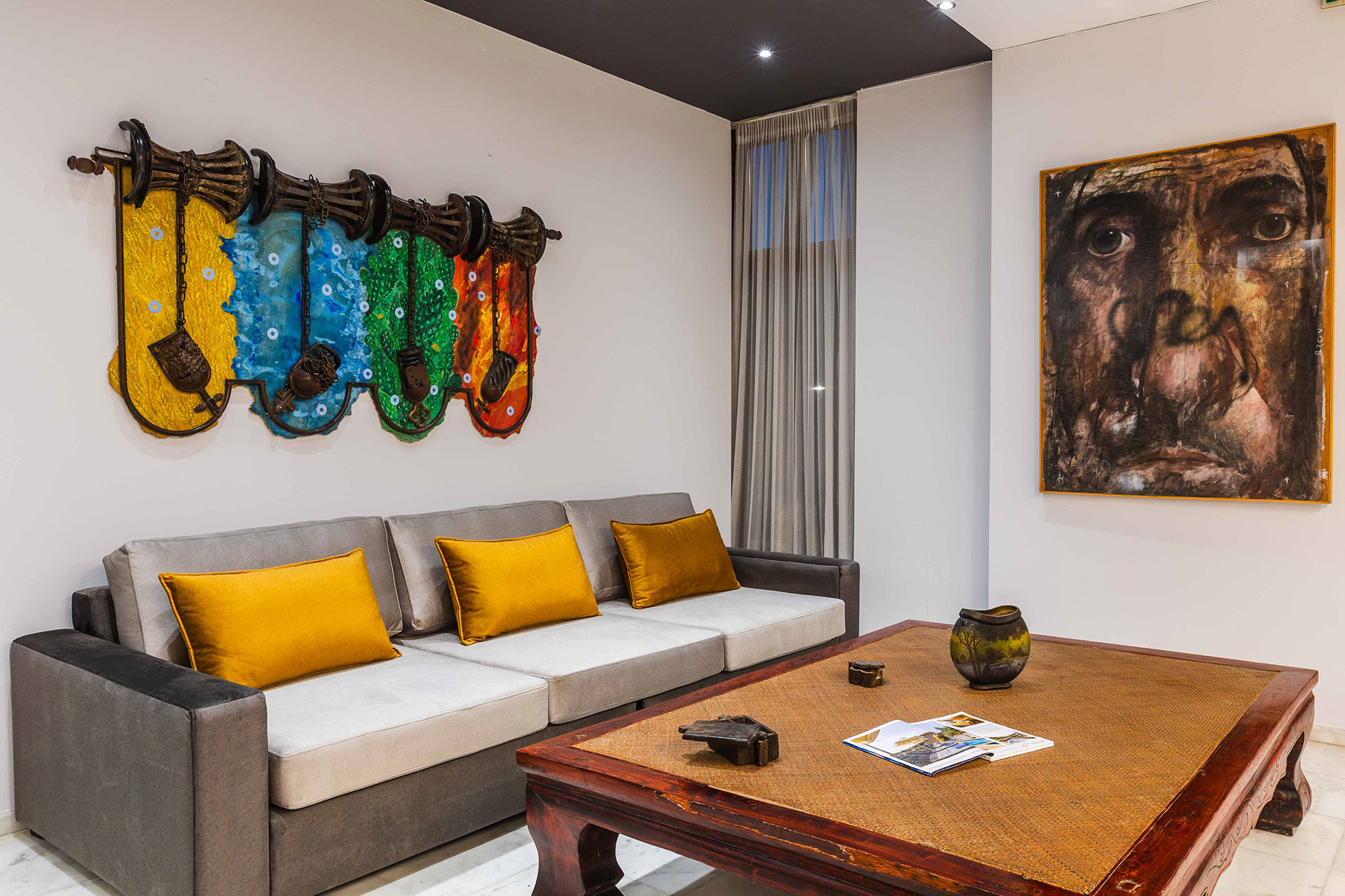 In the reception and lobby bar, Manolis Polymeris’ expressionist creations draw the eye with their striking forms, while handmade carpets, Galle vases, and 18th-century antiques add depth, history, and charm. Every detail of La Piscine Art Hotel celebrates art, elegance, and timeless beauty, defining it as a truly exceptional Art Hotel.