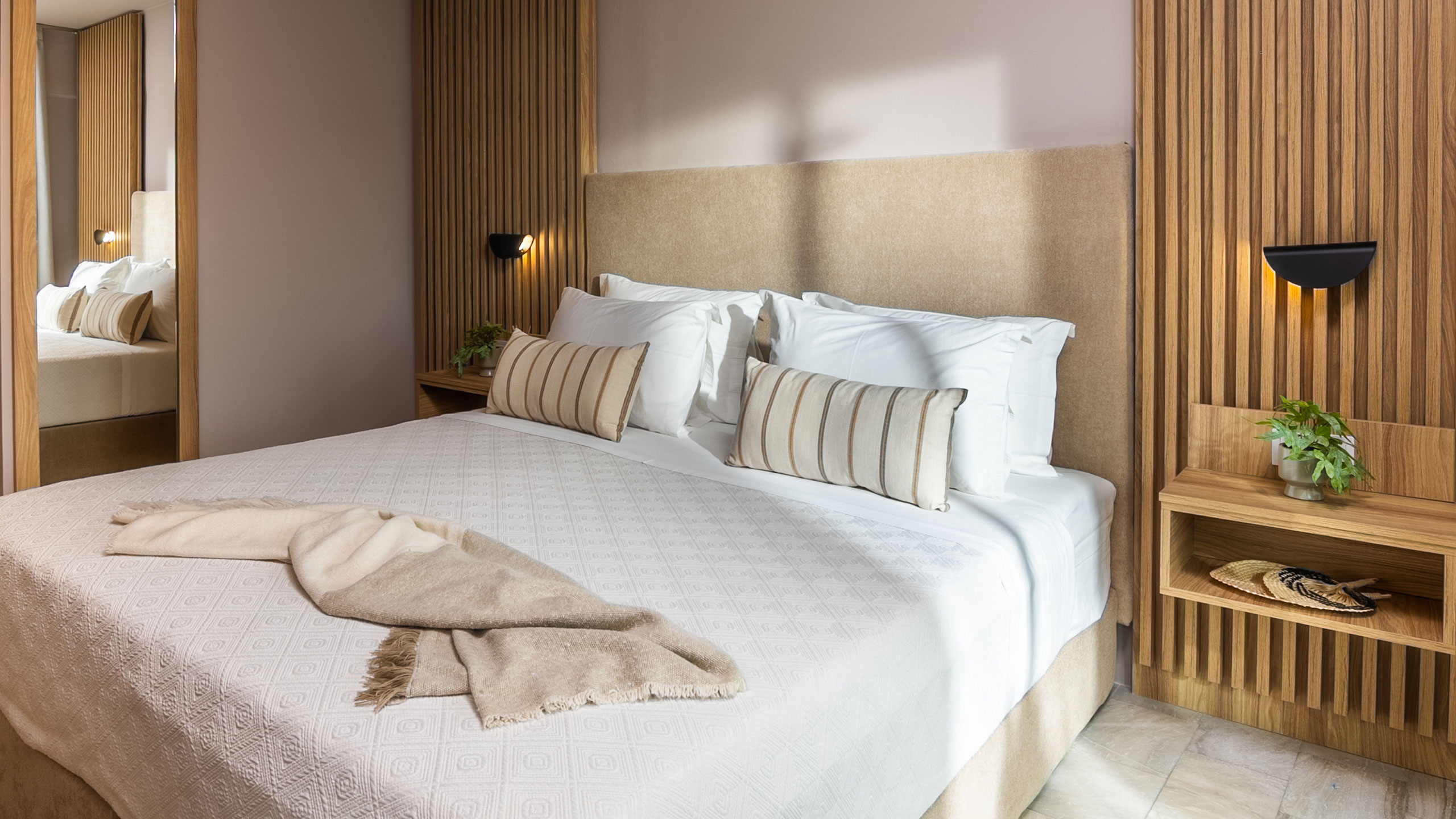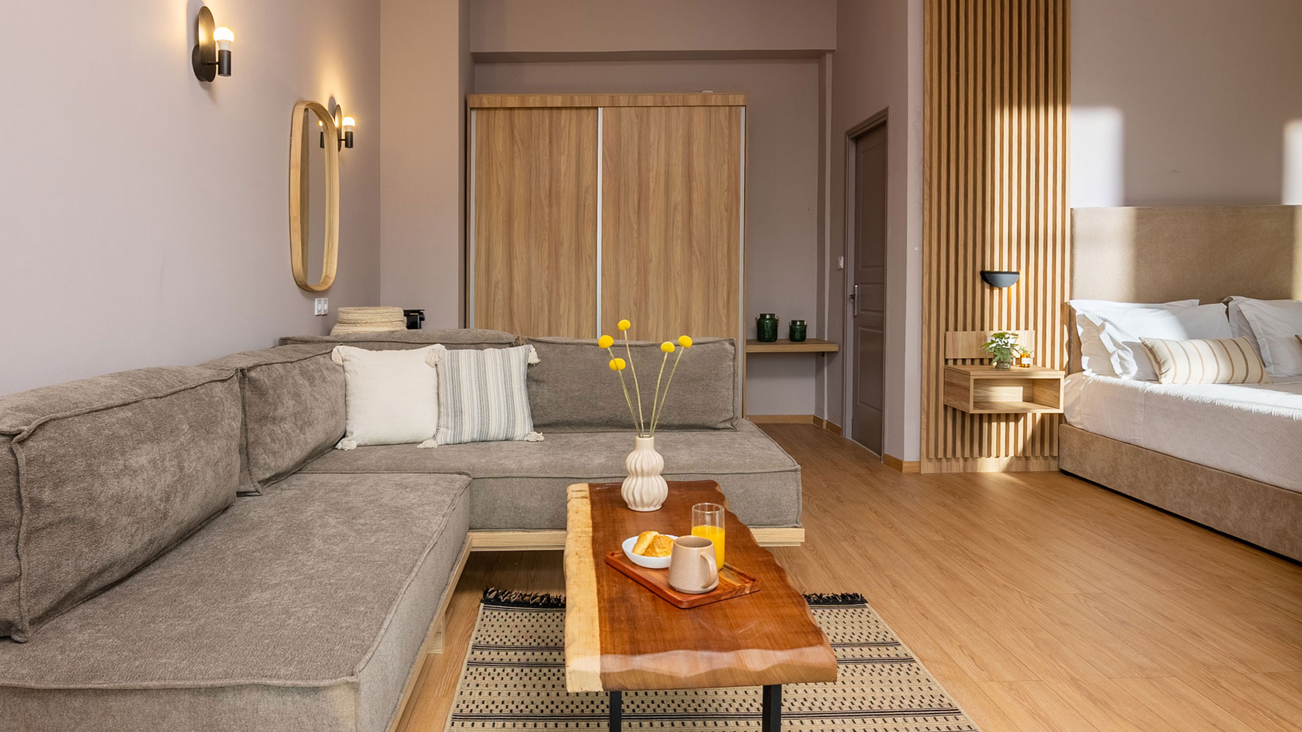 Start your day with stunning panoramic sea views from the comfort of your room. Ideal for romantic escapes, this room offers an intimate setting with breathtaking scenery. Enjoy the calming blue hues of the Aegean. A perfect retreat for couples seeking an unforgettable stay.