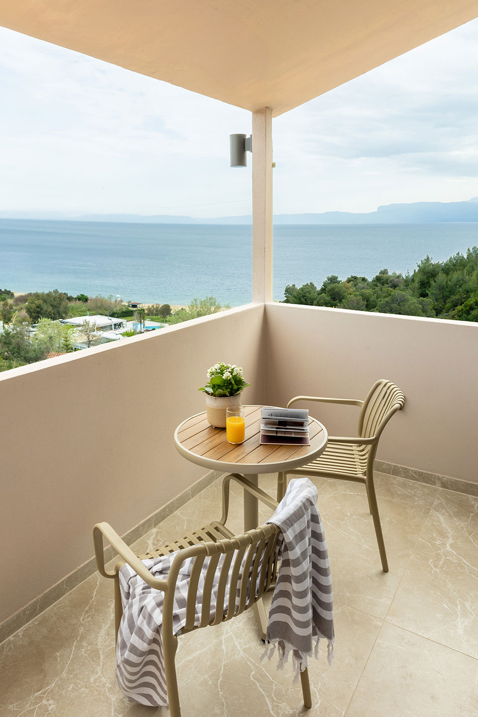 Each of our rooms is thoughtfully designed to offer a serene retreat, where comfort meets elegance in every detail. Wake up to breathtaking views, whether it’s the mountains or the sea, from your private balcony.