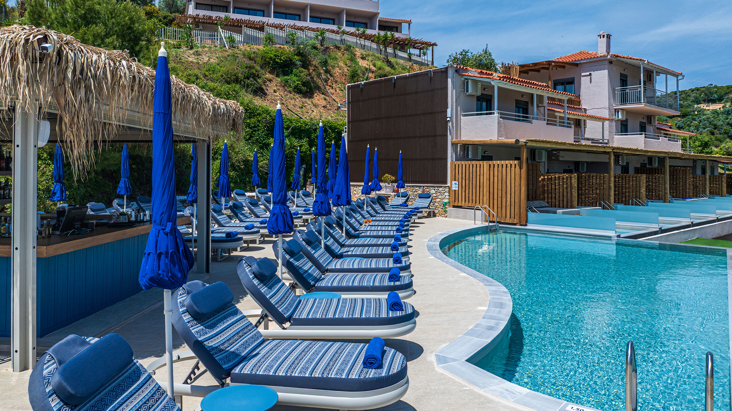 Experience the ultimate poolside leisure with uninterrupted sea views. Whether you’re swimming or lounging, this space offers an idyllic setting for both relaxation and enjoyment.